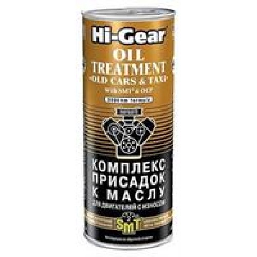 Комплекс суперприсадок к маслу для старых двигателей с SMT2 Hi-Gear OIL TREATMENT ""OLD CARS & TAXI"" with SMT2 & OCP. Предназначен для добавления в моторные масла всех типов, работающие в бензиновых и дизельных двигателях автомобилей с большим пробегом (более 70 000 км) или имеющих повышенный расход масла и дымление. Оптимизирует работу пар трения, имеющих увеличенный зазор вследствие износа. Позволяет снизить динамические нагрузки на ответственные детали двигателя и увеличить срок его службы. Содержит синтетический кондиционер металла SMT2, существенно уменьшающий потери на трение и интенсивность износа деталей двигателя.